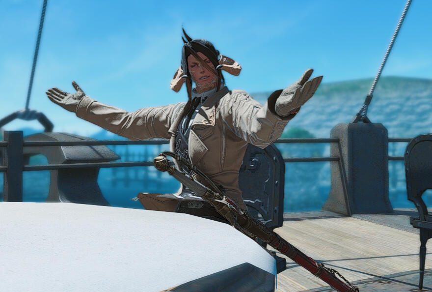 Gil-Brained: Kosuke has a head for all things trading, commercial, and monetary. He could likely list the current economic trends in Kugane by memory and would talk your ear of if you'd let him. It can get bad.Rusty Blade: Kosuke, once, had been honing his sword arm. He has not really kept up with it though, and while he remembers the training of his youth, his swordsmanship is a little lacking these days. It is still technically a skill, though, if you consider knowing how not to fall on your own blade a skill.Fishing: Fishing is a hobby Kosuke has picked up relatively recently, but he's currently growing to be a fairly knowledgeable angler. When not busy with his work, he'll find a local fishing hole and cast a few lines.