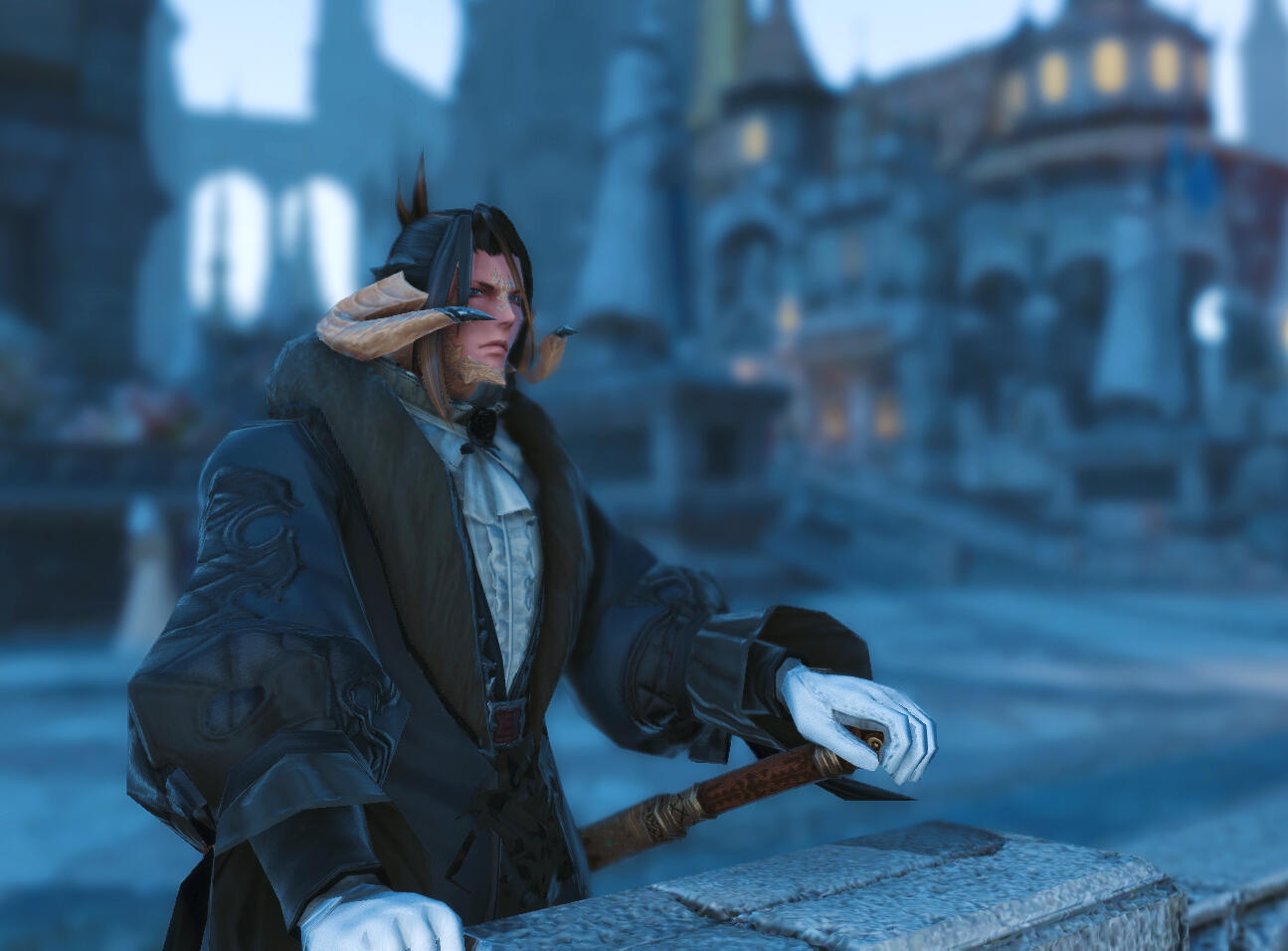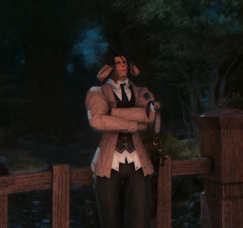 Mr. Moneybags: Need a loan? Some financial advice, perhaps? Someone to rob? Kosuke is a rather well known businessman throughout the streets of Ul'dah, so it's not out of the question one might recognize him if they're more familiar with the city. Other perceptive individuals could just look at him and see he's loaded, both through the way he carries himself and fineries he's regularly dressed in.A Smile and A Drink: Kosuke's not the type to bite, as long as you're not screwing with him first. He's typically willing to go for a friendly chat if you catch him on his few off hours.Fishing Friend: After realizing he barely had any passions outside of work, Kosuke has taken up fishing as a past time. He is largely inexperienced and doesn't do it much, but would be happy to trade stories with a more experienced angler.